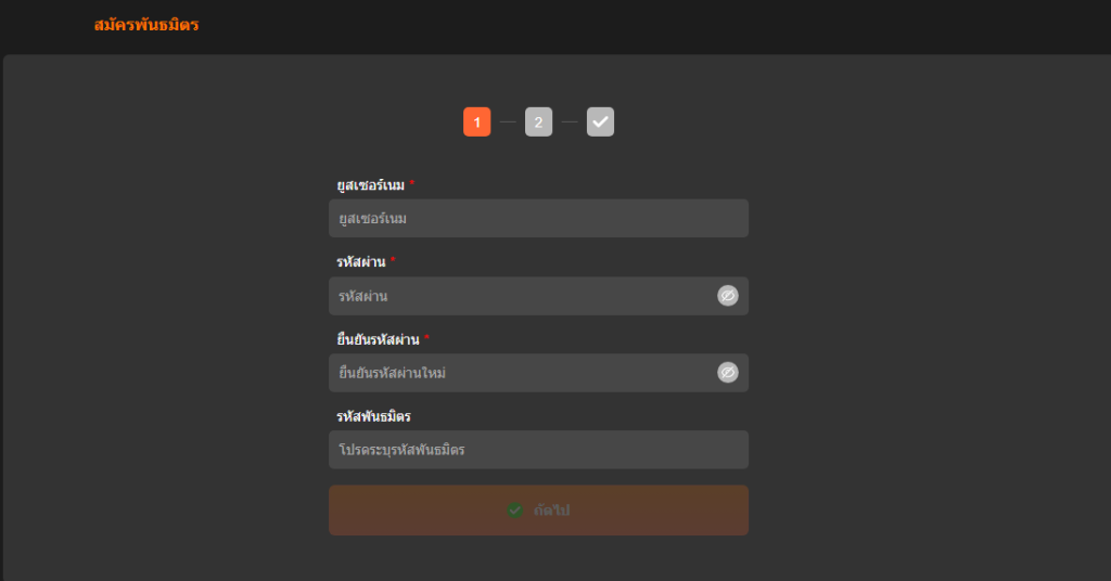 กรอกข้อมูลบัญชีเดิมพันให้ถูกต้อง